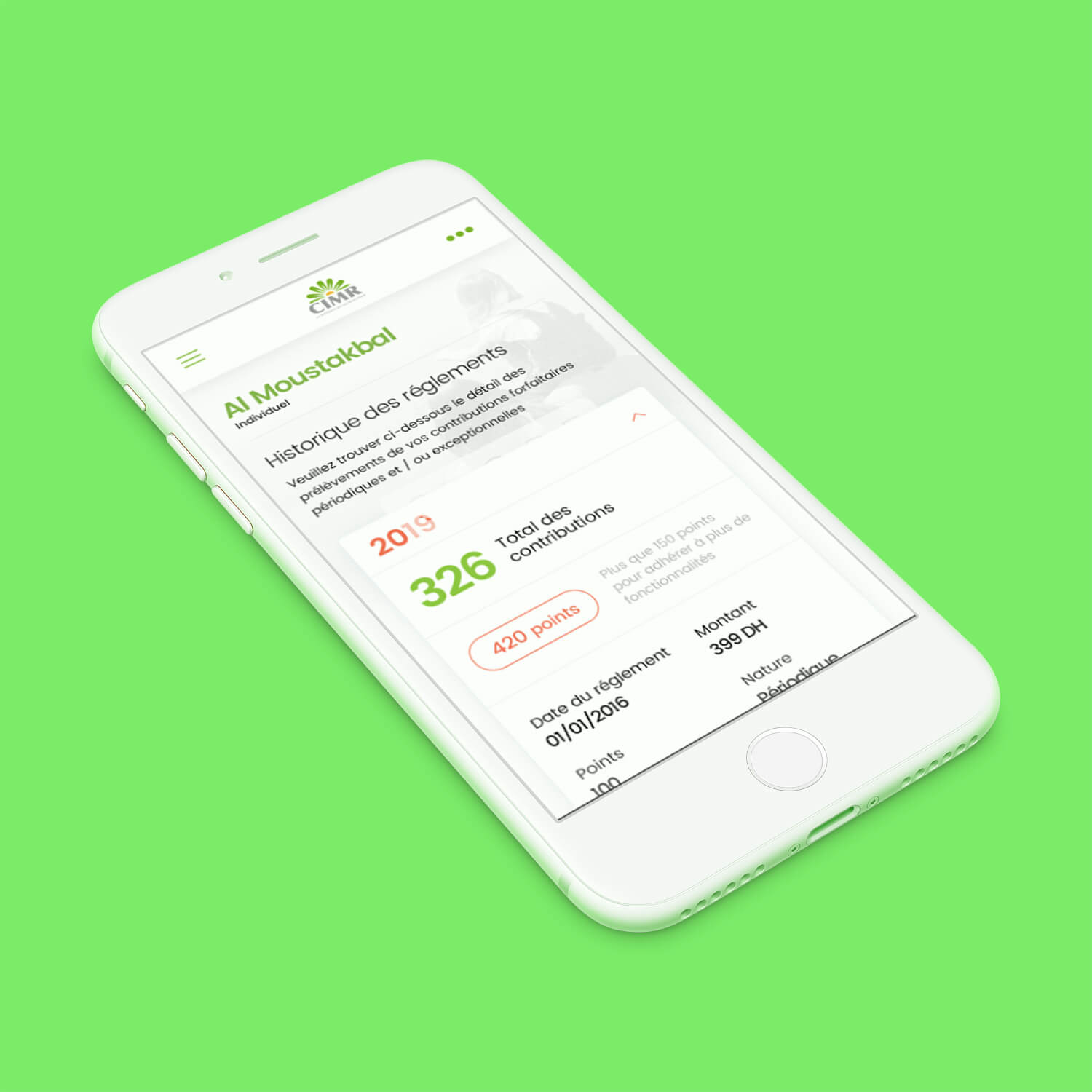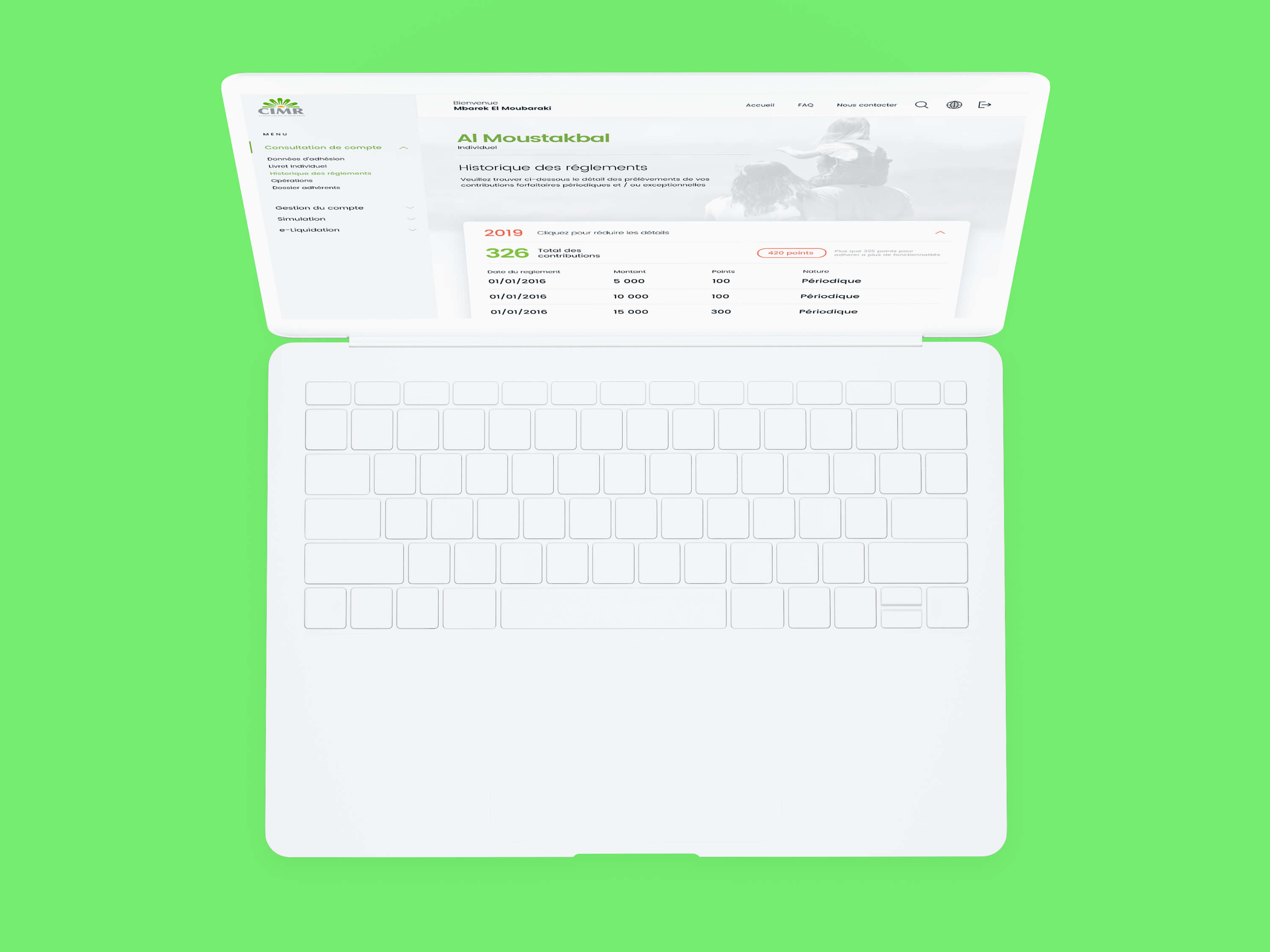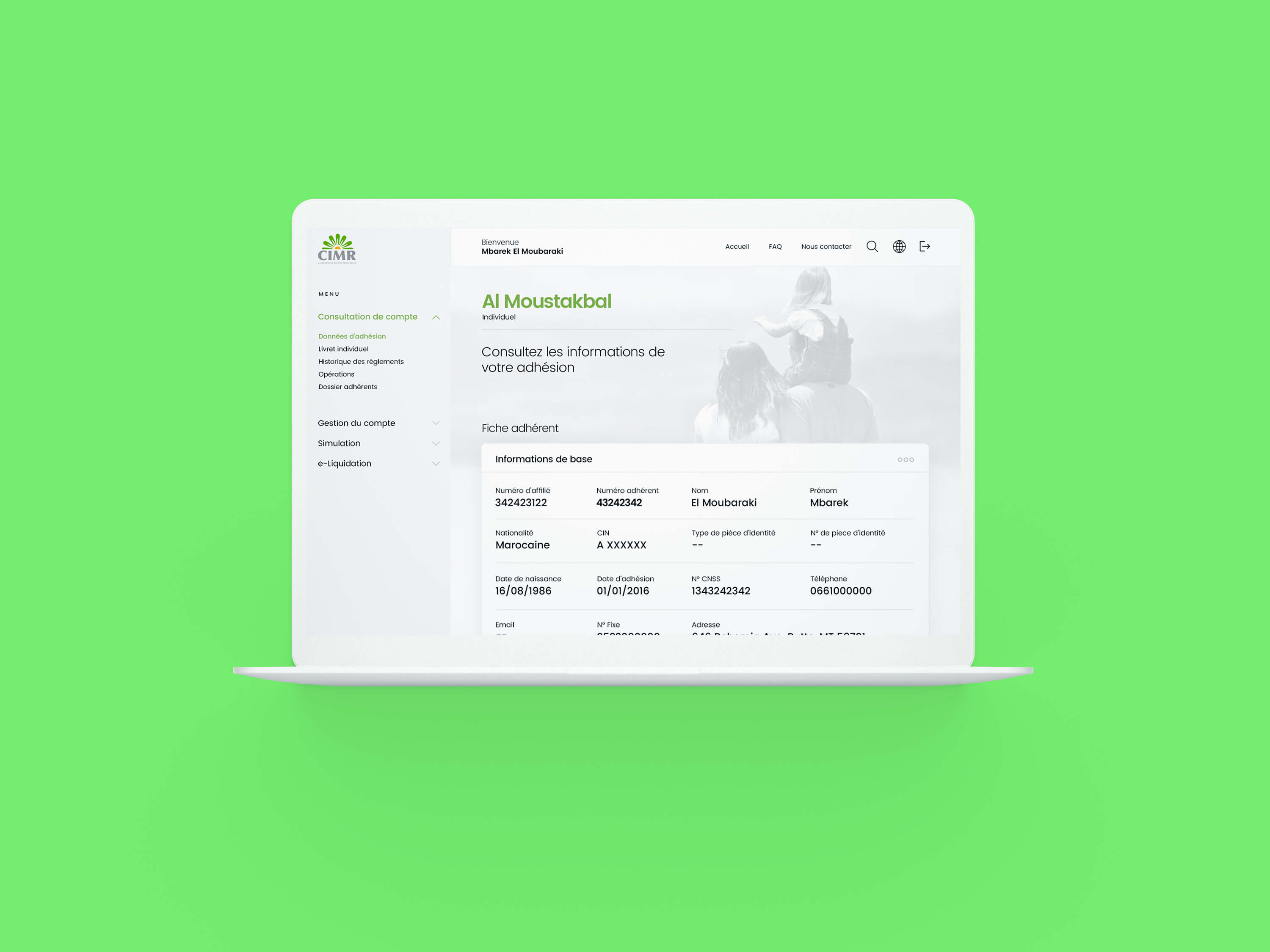 Ce dashboard interactif offre au consumer les informations et l'accompagnement nécessaire pour adhérer au produit de retraite CIMR. voir le prototype