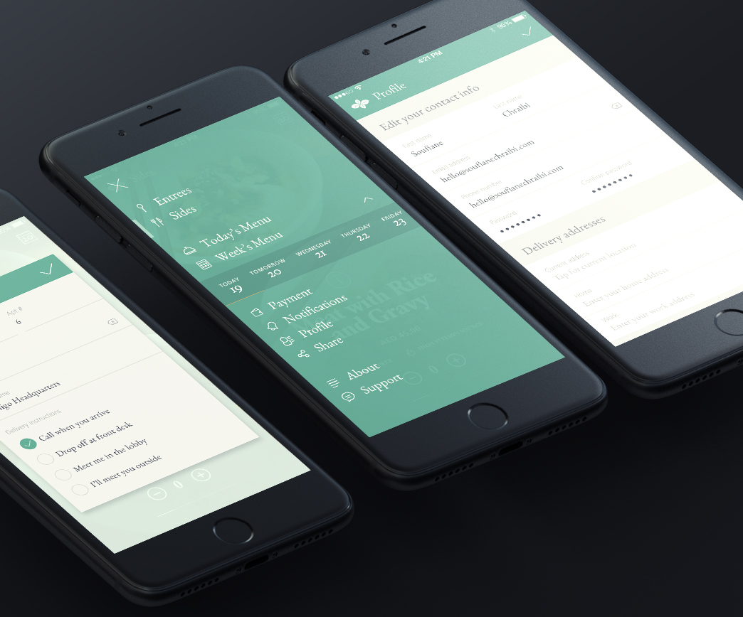 Basiligo is a food delivery concept located in Abu Dhabi that consists of delivering fresh and healthy meals to your doorsteps. The UI/UX logic were made clean and simple, swiping left or right will make you browse through the today's menu, tapping a menu will toggle the nutritional facts, ingredients and reviews tabs.